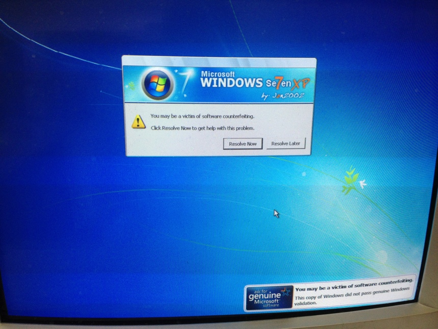 ตามนั้นครับ โดนจับได้ว่าใช้วินโดวส์ละเมิดลิขสิทธิ์ แต่ไม่ถึงขั้นว่า ข้อมูลไม่เหลือหรอกครับ... ถ้ามีตังค์ก็ไปซื้อมาลงใหม่ / ถ้ายัง.... ก็กด Resolve Later เข้าไปใช้งานได้ เพียงแต่ เวลาท่านเปลี่ยนรูปเดสท๊อปแล้ว พอปิดเครื่อง เปิดใหม่ หน้าจอก็จะดำ ไม่จำที่ท่านเปลี่ยน ส่วนวิธีแก้เห็นข้างบนบอกกลัว ก็เลยกลัวตาม... 5555 ลองหาเอาในเน็ตดูนะครับ ของท่านเป็น winXP นะ ไม่ใช่ win7 [Spoil] คลิกเพื่อดูข้อความที่ซ่อนไว้