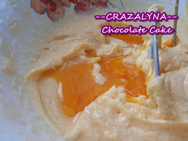 ค่อยๆ หยอดไข่แดงลงไปทีละฟองตีไปเรื่อยๆให้เข้ากันเป็นเนื้อเดียว
