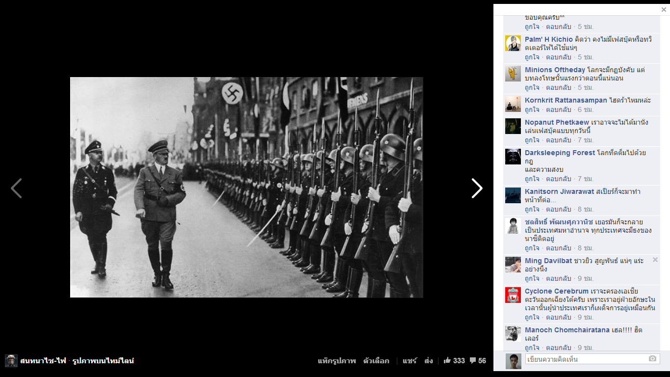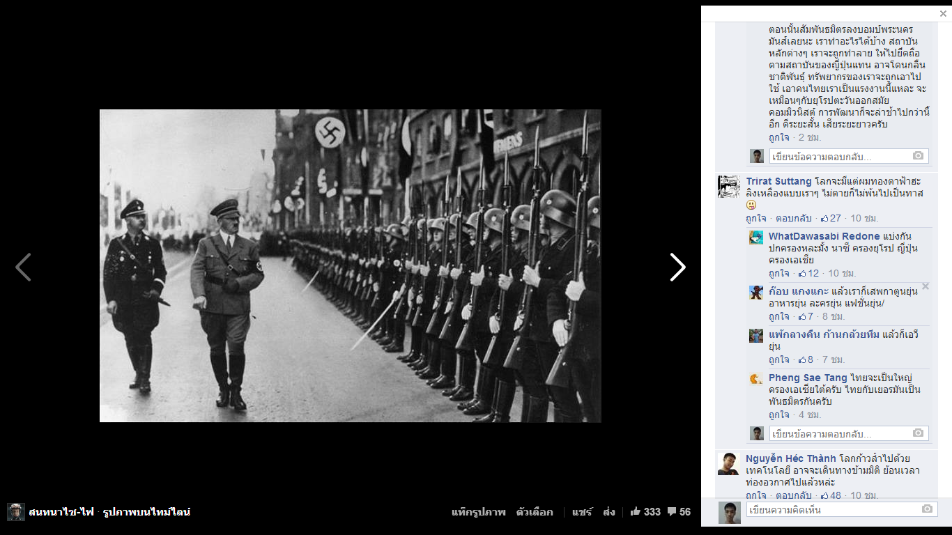 บางเมนท์นี่ผมเพลียเลยนะอย่างที่เห็นในภาพและมันเป็นจริงอย่างที่หลายคนว่า "เราไม่เคยรับรู้ความโหดร้ายที่นาซีทำเลย" แม้นาซีจะฆ่าล้างคนตายไปเยอะแค่ไหน ร่วมมือกับญี่ปุ่นบุกประเทศแถบเอเชียฆ่าคนตายไปกี่ล้านก็ไม่รู้(ในสงครามโลกครั้งที่ 2 คนตายประมาณ 50 ล้านคน ) บางเมนท์ก็แสดงความเห็นได้ดีครับแต่บางเมนท์นี่เครียดได้เลยนะถ้าซีเรียสเรื่องพวกนี้แบบผม