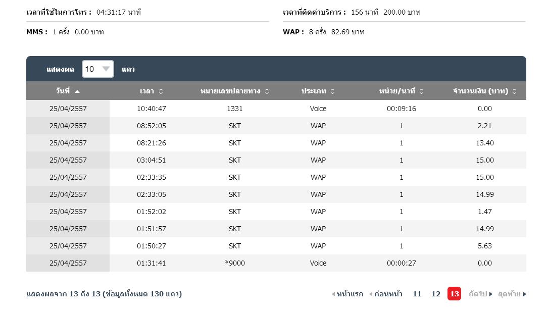และก็ได้ใช้งานมาปกติ พอมาวันนี้ เช็คยอด ผ่านทาง ทรูไอเซอร์วิส ก็ได้พบว่า หลังเที่ยงคืนวันที่ 25 จนถึง8โมงเช้า มีการเก็บค่าบริการ 3G 82 บ. ทั้งๆ ที่รวมอยู่ในโปรโมชั่น และ ค่าบริการที่เกินจากการโทร ตอนแรก 197 บาท แต่มีค่าโทรไป 1331เพื่มอีก 1 รอบเป็น 200 ซึ่งผมคิดว่าไม่น่าจะเกินได้