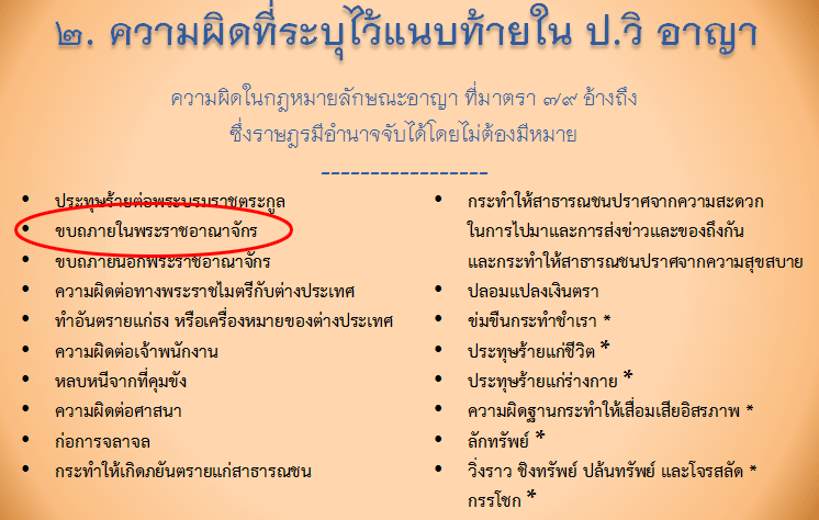 ความผิดที่ระบุไว้ตามบัญชีแนบท้าย..