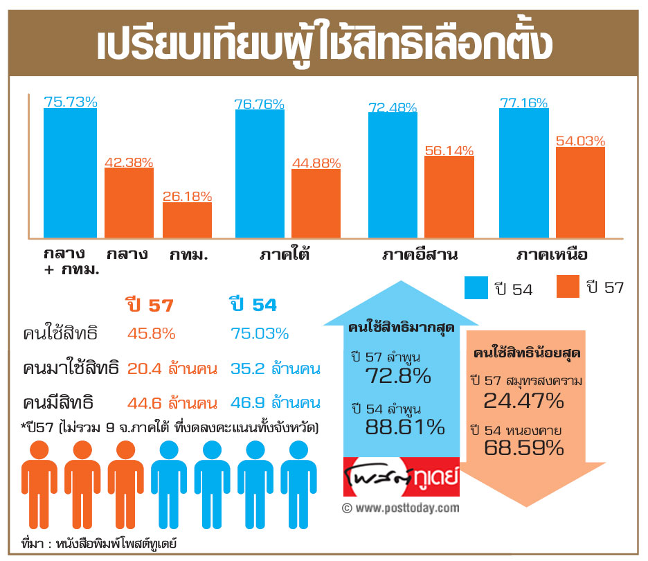 หากเทียบกับการเลือกตั้งเมื่อปี 2554 ที่มีผู้ใช้สิทธิทั่วประเทศ 75% ลดลงถึง 30%
