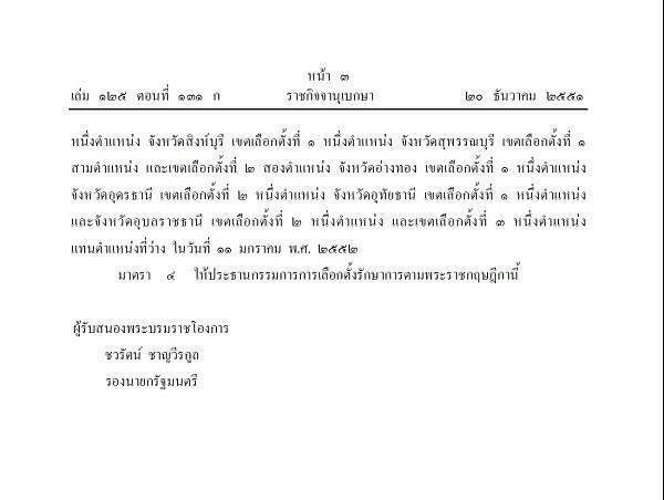เปิดพระราชกฤษฎีกาเลือกตั้ง ส.ส.2552 พบ"ชวรัตน์ ชาญวีรกุล" ปฏิบัติหน้าที่แทนนายกฯ เป็นผู้รับสนองพระบรมราชโองการ