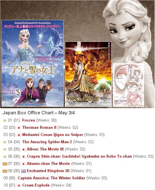 Japan Box Office 10-11พค. Frozenโกย17,000ล้าน ลูเชียส 3,000ล้าน โคนัน 3,434ล้าน ทามาโกะ124ล้าน