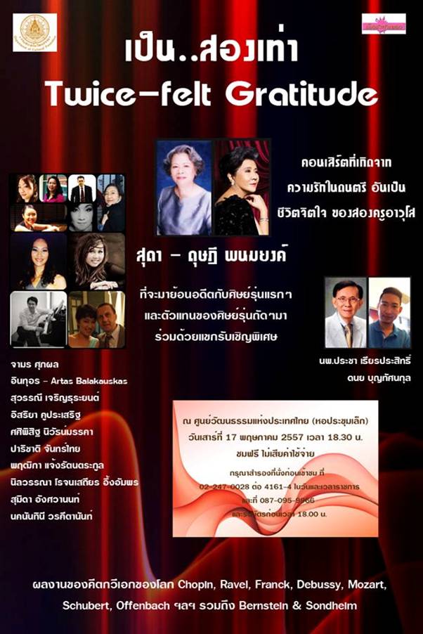 ฟรีคลาสสิคอลคอนเสิร์ต......“เป็น..สองเท่า”.. (Twice-felt Gratitude)