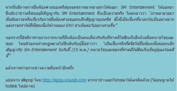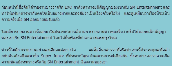 [K-POP] ไปเที่ยวกลับมา เพิ่งเห็นข่าว ยืนยันว่า คริส EXO จะยกเลิกสัญญากับ SM เป็นจริงหรือมั่วคะ