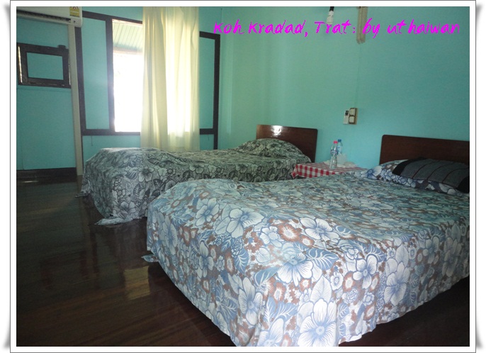 เป็น twin bed มีน้ำดื่มให้ 1 ขวด ไม่ต้องกลัวน้ำไม่พอทานค่ะ เขาจะวางขวดน้ำไว้ที่ห้องอาหาร มีกระติกน้ำร้อน เป็นส่วนกลาง สามารถหยิบมาทานที่ห้องพักได้ ที่นี่ไม่มีโทรศัพท์ค่ะ ไฟฟ้ามีเวลา เขาปั่นไฟเอง วันที่ไปพักไฟฟ้ามาเวลา 18.15 น. และจะปิดเวลา 07.00 น. มีแอร์ค่ะ เย็นฉ่ำ ของใช้ในห้องน้ำ ควรนำไปเอง เพราะมีสบู่ก้อนเล็กให้แค่ก้อนอื่น (สำหรับของตัวเองนะค่ะ) อันนี้ไม่มายค่ะ เพราะเราเตรียมไว้อยู่แล้ว ผ้าเช็คตัวมีให้ห้องละ 2 ผืนค่ะ นอนพักสบายค่ะ