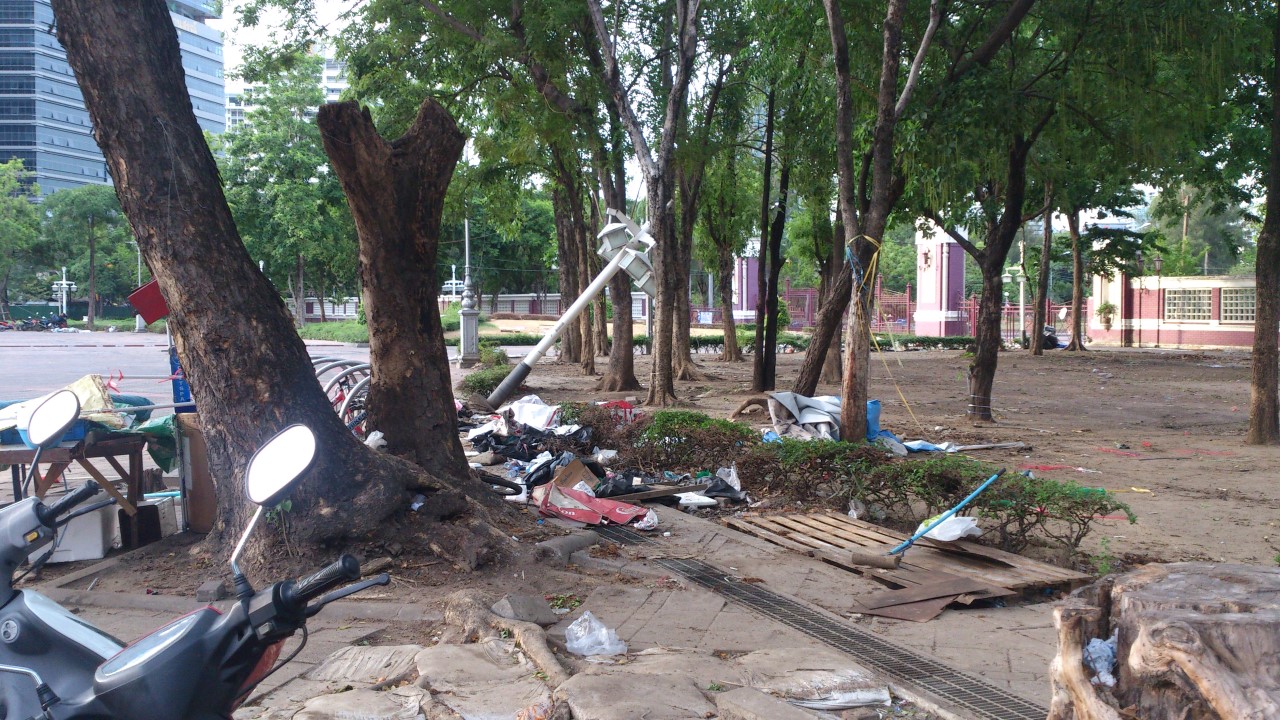 พอม็อบย้ายออกจากสวนลุม มันตัดไฟซะมืดตื๋อ