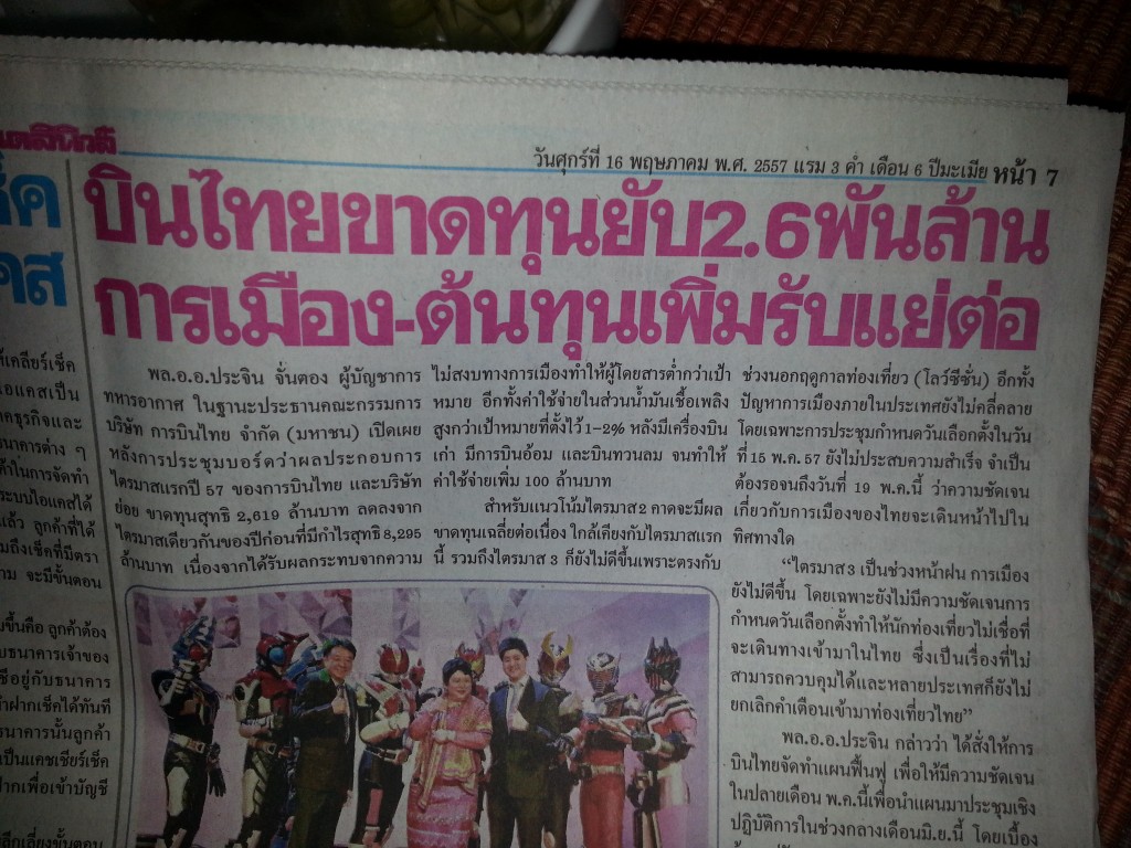ขอต่ออีกหน่อย ข่าวใกล้ๆกัน การบินไทยไตรมาสแรกขาดทุนยับ นั่งท่องเที่ยวหาย