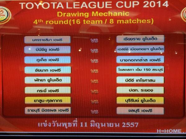ผลการประกบคู่โตโยต้าลีกคัพ รอบ 16 ทีม สุดท้าย