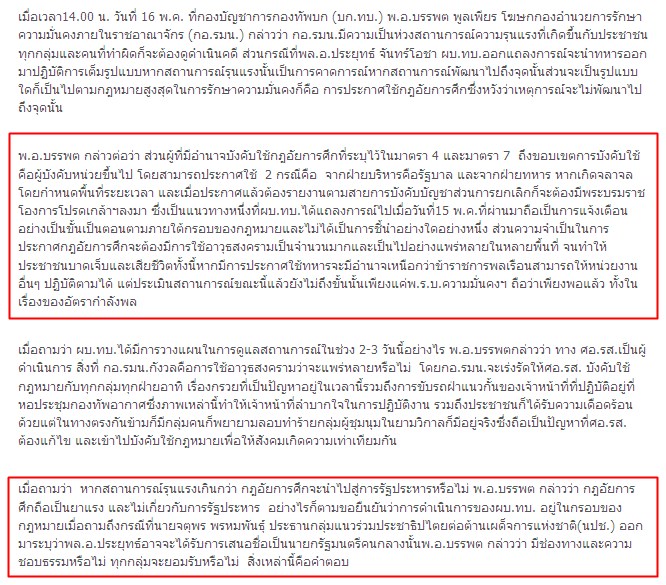 โฆษกกอ.รมน. ยันพ.ร.บ.ความมั่นคงฯ คุมม็อบอยู่ จี้ ศอ.รส.บังคับใช้กฎหมายทุกกลุ่มเท่าเทียมกันเล็งประกาศกฎอัยการศึก