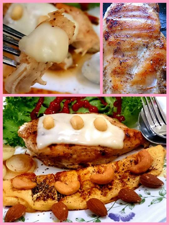 และนี่หน้าตาอาหารที่ทำครับผม (ชีสที่ใช้เป็นชีสไขมันต่ำนะครับผม ผมชอบกินชีสแฮะ - -)