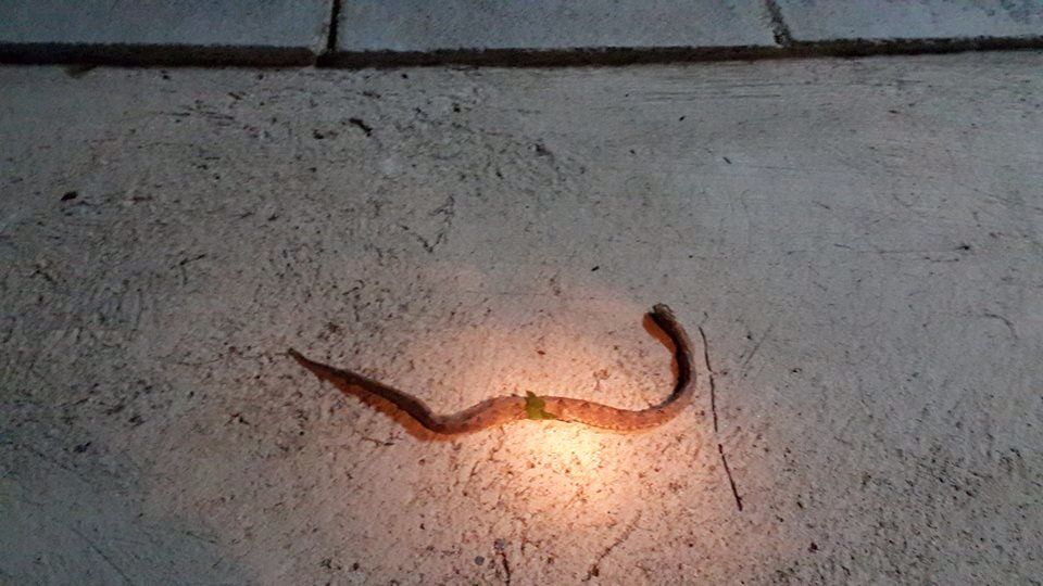 เช้าวันเสาร์ประมาณ 9-10โมง จับงูตัวนี้ได้ที่บ้านโดยใช้ไม่จับงู ใส่ถุงกระสอบ ไม่ได้ถ่ายรูปไว้นะคะ วันเดียวกัน ประมาณ 5 โมงเย็น ปล่อยงูตัวนี้ในป่า แต่ทำไมมันหงอยๆพิกล ปล่อยแล้วไม่ค่อยอยากจะเลื้อยไปไหน