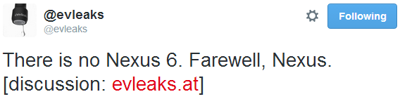 Android อัพเดทข่าวล่าสุดกับ ป๋าเอก TechXcite แอบใจหายอยู่เหมือนกันถ้าข่าวนี้เป็นจริงขึ้นมาเมื่อมีข้อมูลใหม่จากทีมงาน @evleaks เจ้าพ่อภาพหลุดมือถือยุคนี้เปิดเผยออกมาแล้วว่า Google จะไม่ผลิตสมาร์ตโฟนในตระกูล Google Nexus รุ่นใหม่ (หรือก็คือ Google Nexus 6) อีกต่อไปแล้วครับ