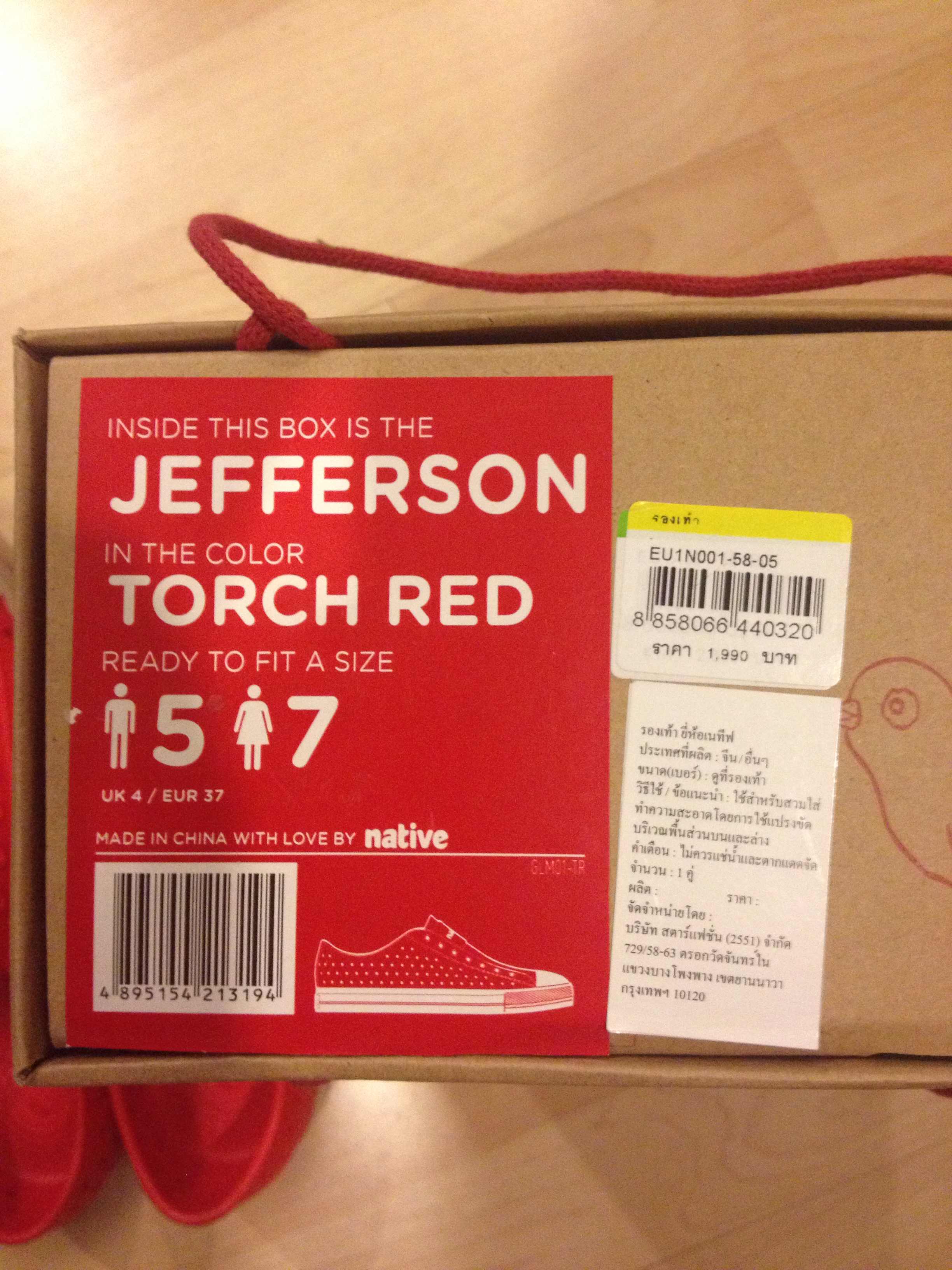 ขายรองเท้า native รุ่น jefferson สีแดง ของแท้ 100% ค่ะ