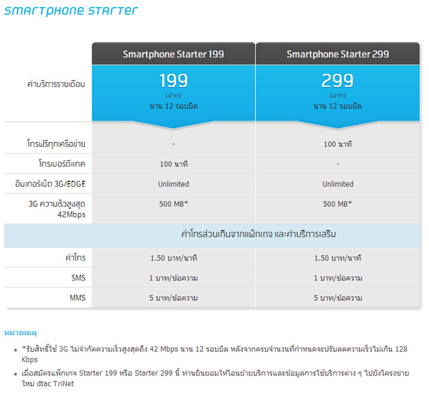 [DTAC] แพคเกจ Smartphone Starter 299 กับ Starter 199 ต่างกันตรงไหนบ้างครับ