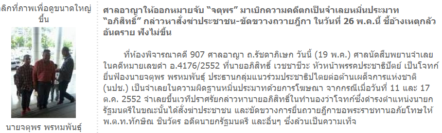 เพราะคนที่ดูหมิ่น ใส่ร้าย ติดคุกไปแล้ว และที่สำคัญคือ มันไม่เป็นความจริง ทั้งพี่กี้ร์ และ ตู่ จตุพร คนละ 1 ปี ไม่รอลงอาญา ถ้าใครมาใส่ร้ายอีก ฝ่ายกฎหมายของท่านอภิสิทธิ์ ก็ฟ้องอีกได้ กฎหมายจะได้ศักดิ์