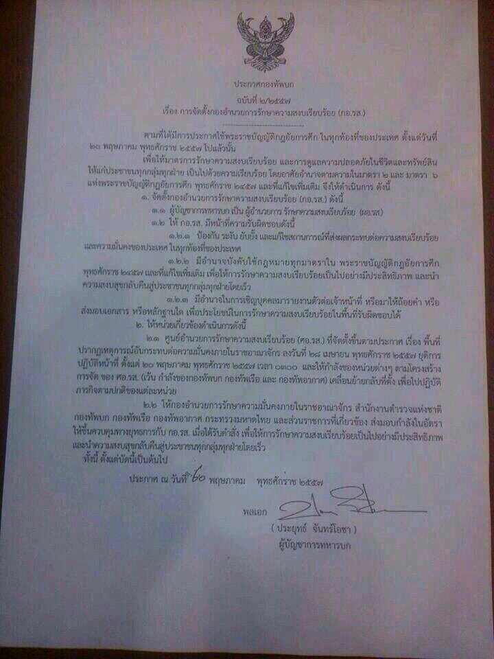 ประกาศกฏอัยการศึก 20 พฤษภาคม 2557 ..ได้ปฏิรูปก่อนเลือกตั้งจริงๆ 55+