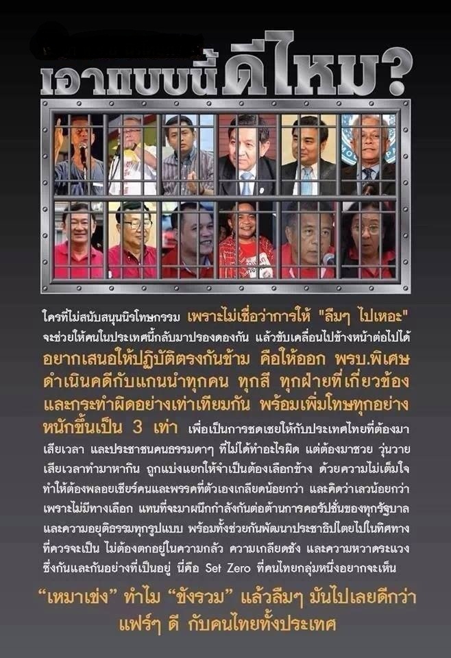 ถ้าจะให้สงบจับให้หมดนะทั้ง สส สว กกต ฯลฯ ใครทำผิด แล้วไม่ใช่อีกฝ่ายให้ประกันตัวเลื่อนวันนัดศาลได้ยันลูกบวชส่วนอีกฝ่ายติดก่อนประกันทีหลัง