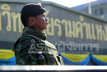 ทหารเข้าไปช่วยเหลือนักศึกษารามคำแหง ภายหลังการชุมนุมเสื้อแดงที่สนามรัชมังคลา ภายหลังเสื้อแดงไม่สามารถมาชุมนุมที่นี้ได้อีก