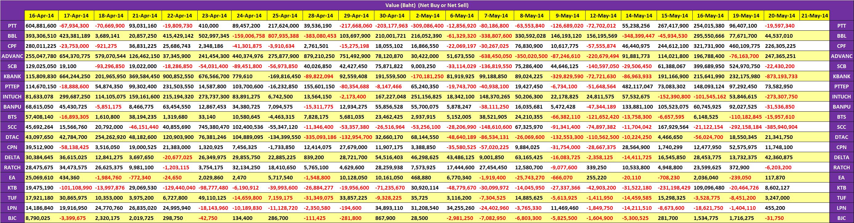 Thai NVDR Top 20 Ranking [ Net Buy + Sell ประจำวันที่ 16 Apr - 20 May 2014 ] ^o^