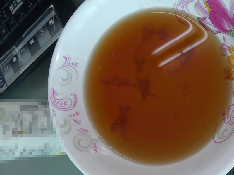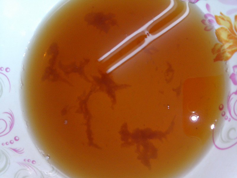 เมื่อเดือนก่อนได้ซื้อชาเขียวยีห้อดังยี่ห้อหนึ่งมาดื่มที่เซ่เวน ตอนที่ดื่มเข้าไปรู้สึกว่ามีอะไรคล้ายๆวุ้นอยู่ในปากพอเอาออกมาดูก็เป็นเมือกๆสีน้ำตาลสีเดียวกับชา