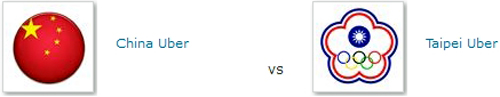 Uber Cup - China vs Taiwan เริ่มแข่งประมาณ 20.30 น. คอร์ท 2 (TV)