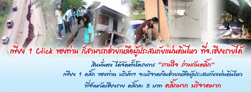 ขอเชิญช่วยเหลือผู้ประสบภัยแผ่นดินไหวที่เชียงราย แค่คลิ๊ก like fanpage