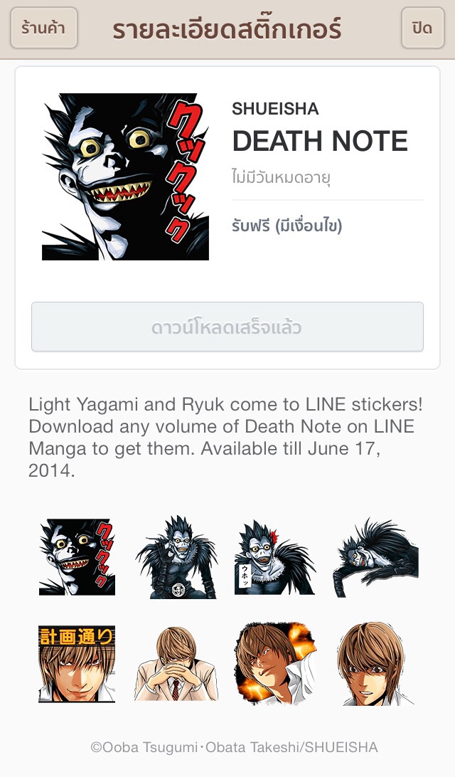 มีเล่ม 1 เล่ม 2 แจกฟรีอยู่นะครับ โหลดเสร็จก็จะโหลดสติกเกอร์ได้