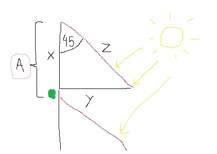ทีนี้ คำถามก็คือ ระยะระหว่างแผ่นเหล็กควรจะเป็นเท่าไรดี(ระยะ A) เพื่อที่จะให้ ช่องเขียวๆ(คือรูที่มองจากด้านในออกไป) มีแดดส่องเข้ามาตั้งแต่4.30pmในหน้าร้อน เป็นต้นไป