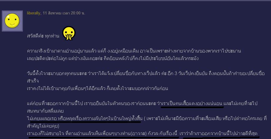 [ขอความเป็นธรรม] กรณีล๊อคอิน liberally แม่ไก่ตัวเล็ก ตั้งกระทู้ชี้แจงด้วยถ้อยคำเป็นเท็จ ทำให้พี่ 099 เสียหาย