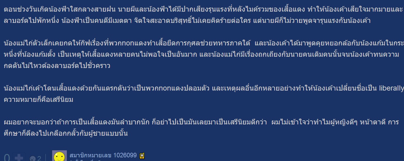 แม่ไก่ตัวเล็กโดนชาวแดงกดดันให้ชี้แจง เธอจึงตั้งกระทู้นี้ขึ้นมาซึ่งเป็นการบิดเบือน