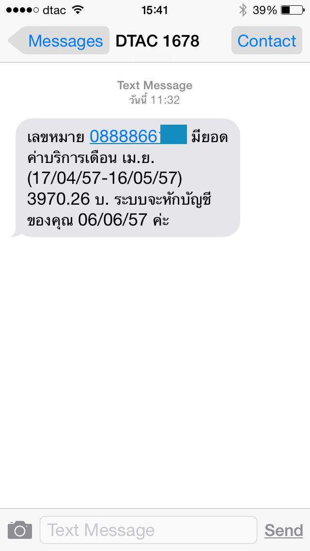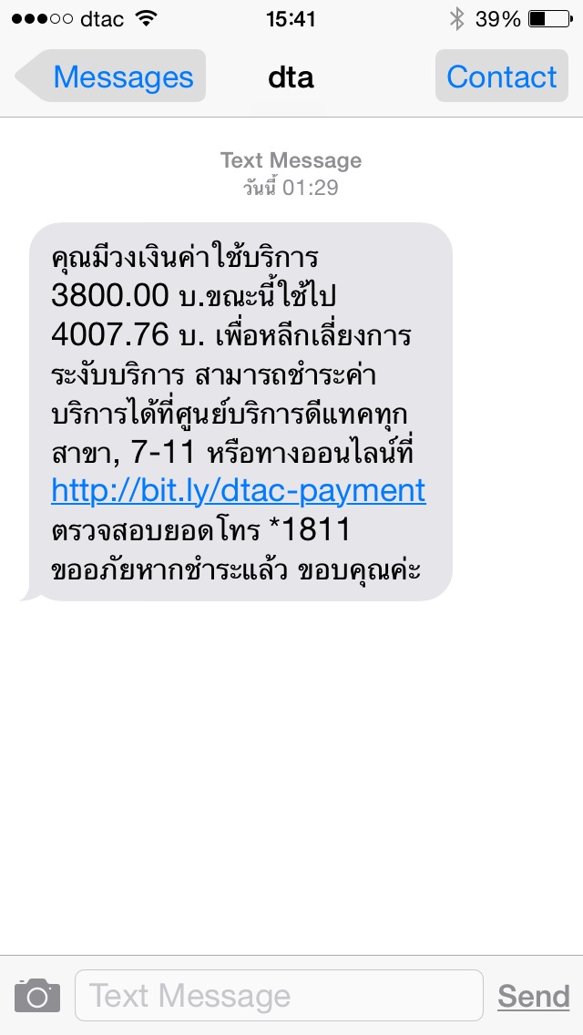 เมื่อวานมี SMS จากทาง DTAC แจ้งมาดังภาพประกอบ