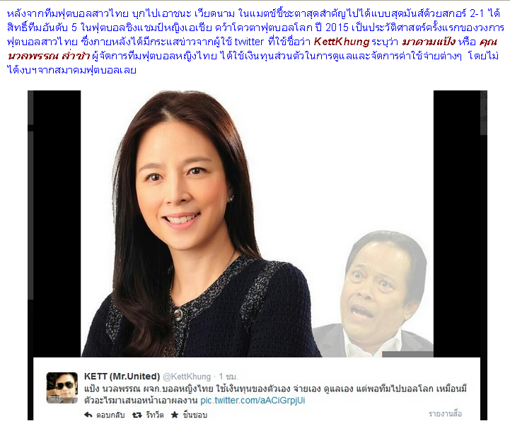 ✤ คุณเห็นด้วยหรือไม่ มาดามแป้ง นั่งนายกสมาคมฟุตบอล ???