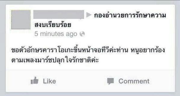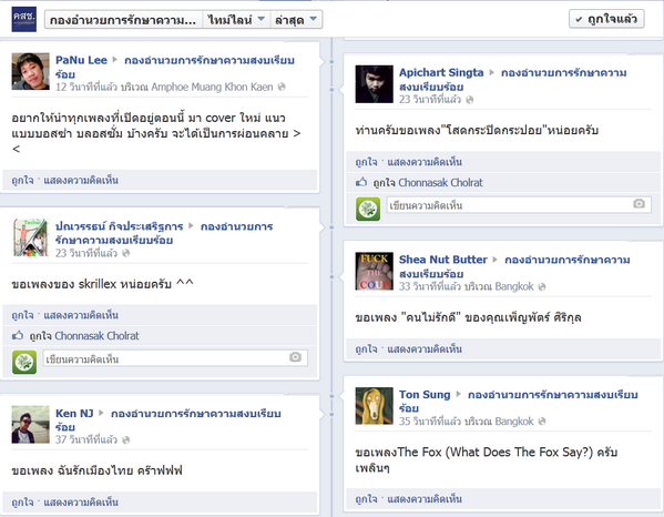 อุจจาระ เต็ม เพจกองอำนวยการรักษาความสงบเรียบร้อย ว่าจะเข้าไปขอเพลงสักหน่อย ปิดแทบไม่ทัน