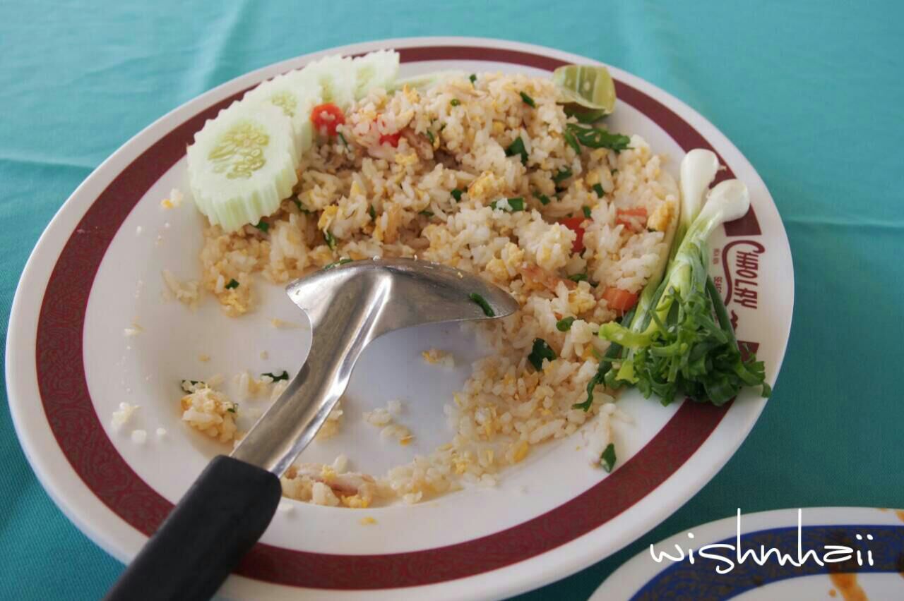 ในมื้อนี้เราสองคนเลือกเมนูเป็นข้าวผัดปู ต้มยำกุ้งขนาดเล็ก และก็หอยลายผัดพริกเผาค่ะ