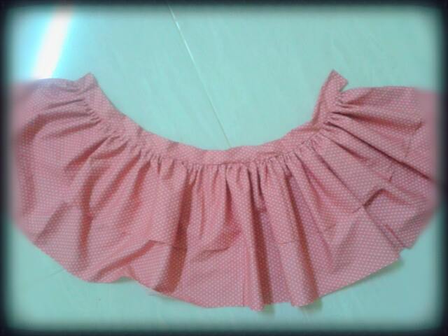 จากนั้นก็เอามาเย็บประกอบกันกะส่วนเอวค่ะ โดยจับจีบเล็กๆโดยรอบ ก็จะได้ออกมาแบบนี้ค่ะ