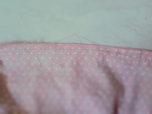 คราวนี้เลยอดทนเย็บแบบด้นถอยหลังทั้งหมด (แต่ได้ผลดีจริงๆค่ะ ดูด้านนอกประนีตเหมือนใช้จักรเลยค่ะ)