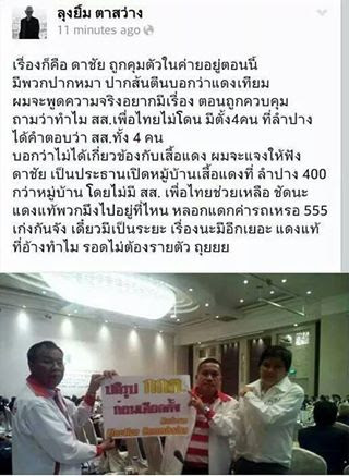 เนี้ยๆ ในรูปเนี้ย แดงแท้หรือเปล่า เอ๊ะ หรือว่าแดงเทียม แหม ใครๆก็ใส่แดงได้นะ แต่ว่าใจน่ะ เป็นประชาธิปไตยหรือเปล่า อันนี้แหละที่เป็นตัวแบ่ง ของแท้กับของเทียม ใช่มั๊ย
