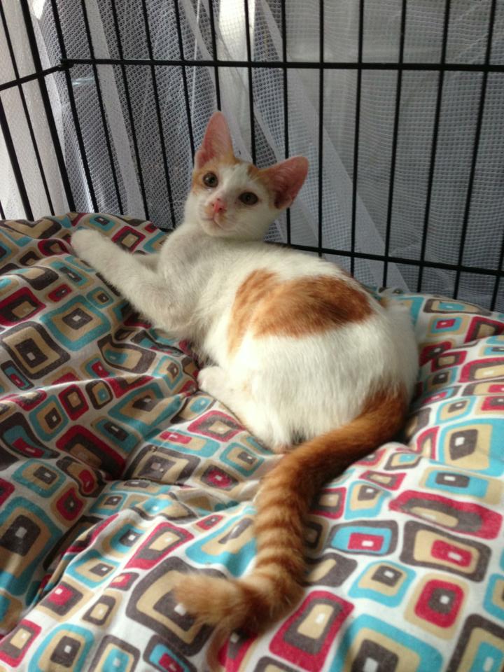 น้องแมว อายุ 4 เดือน เพศชาย ขี้อ้อน น้องเป็นแมวจรอาศัยอยู่ในหมู่บ้านแถวราชพฤกษ์ แม่แมวทิ้งไปตั้งแต่เล็กๆ ตอนนี้จำนวนประชากรแมวจรเพิ่มมากขึ้น และแมวเองก็สร้างปัญหาคือไปอึใส่บ้านพวกเค้า เลยทำให้เค้าไม่