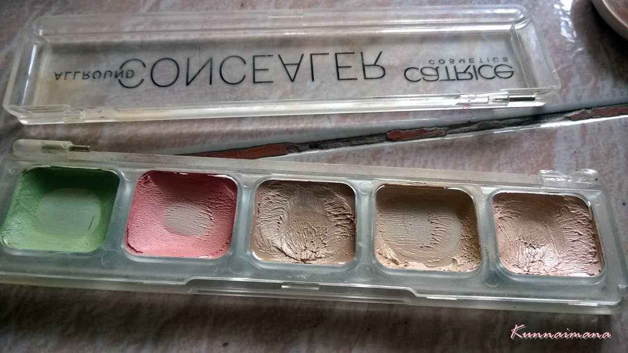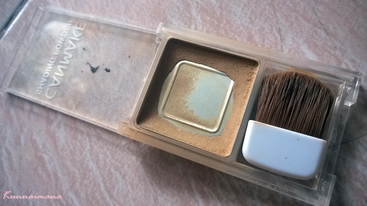 ตัวนี้ไม่ใช่ว่าใช้ไม่ดีนะคะ คือใช้ดีมาก (เมื่อเทียบกับราคา) แต่พอหลังๆ ซื้ออันอื่นมาก็เลยไปใช้อย่างอื่น -*- สภาพตอนนี้อย่างที่เห็นค่ะ ว่างไป 1 หลุมแล้ว แต่จะทำยังไงกับสีอื่นๆที่เข้มไปหรืออ่อนไป? สำหรับเราเอาสีเข้มกับสีสว่างมาผสมกันแล้วทาใต้ตาค่ะ บางทีก็เอาสีสว่างมาทาเป็นไฮไลท์แล้วเอาสีเข้มไปเฉดดิ้ง ส่วนสีเขียวไว้กลบรอยแดง ดีชมพูไว้ผสมลงใต้ตาจ้า