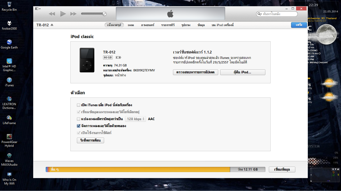 ใช้iPod classic เจน6 120Gb เสียบคอม คอมมองเห็นแต่ในไอจูนกลับไม่เห็น ลองเอาไอพอดตัวอื่นมาเสียบไอจูนก็เห็นเป็นปกติเคยลองใช้โปรแกรม HDD Regenerator ทำการตรวจสอบปรากฏว่าไม่เป็นbad sector แต่มันรายงานว่าเป