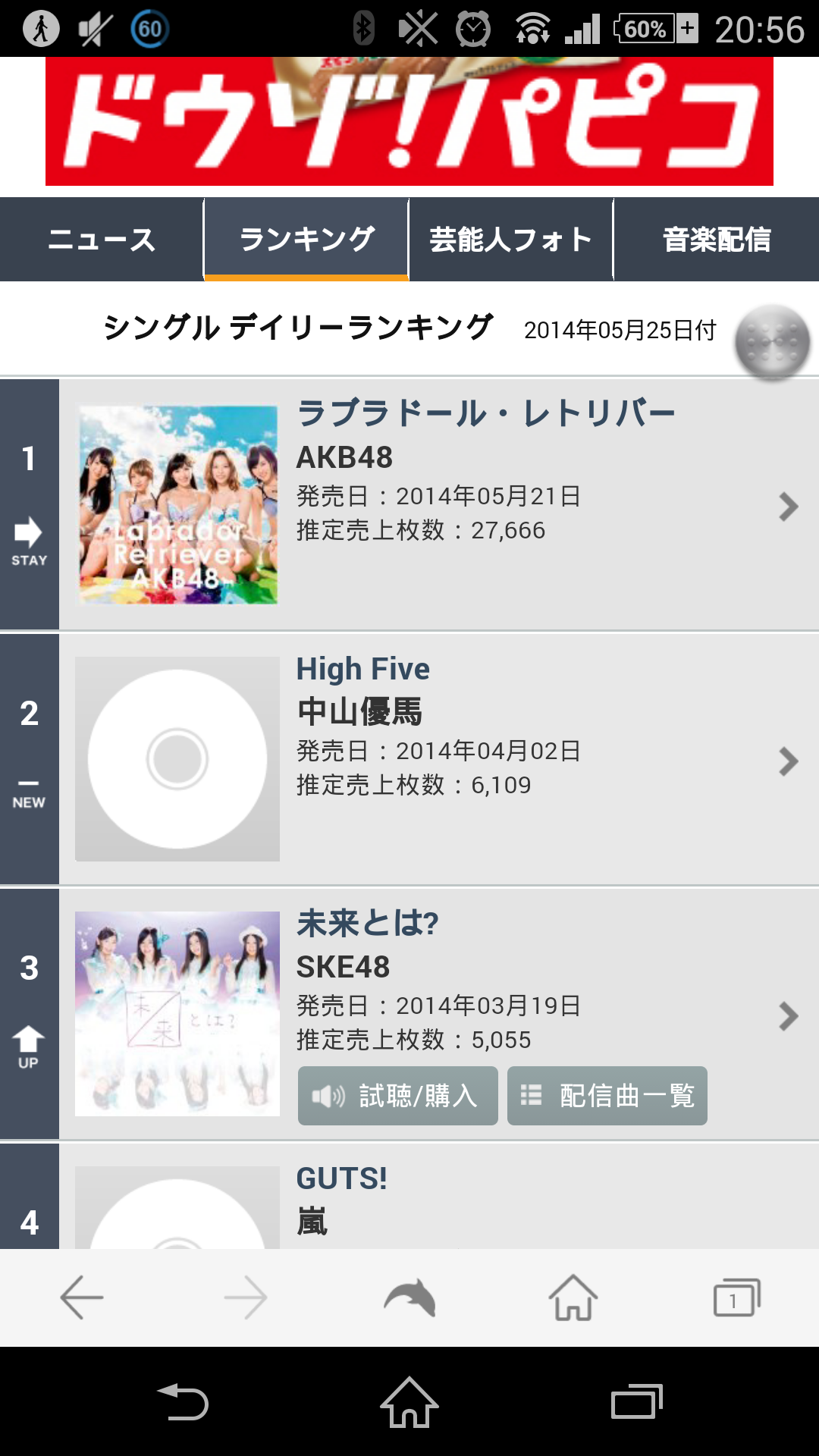 4. さんみゅ~ 5. TVアニメ『Free!』キャラクターソング 004 七瀬遙(島﨑信長)& 松岡凛(宮野真守)6. back number 7. GReeeeN 8. たこやきレインボー 9. X21 10. 豊崎愛生 สถิติย้อนหลังซิงเกิ้ลที่ผ่านมาของ ske48 ส่วนอัลบั้ม https://www.youtube.com
