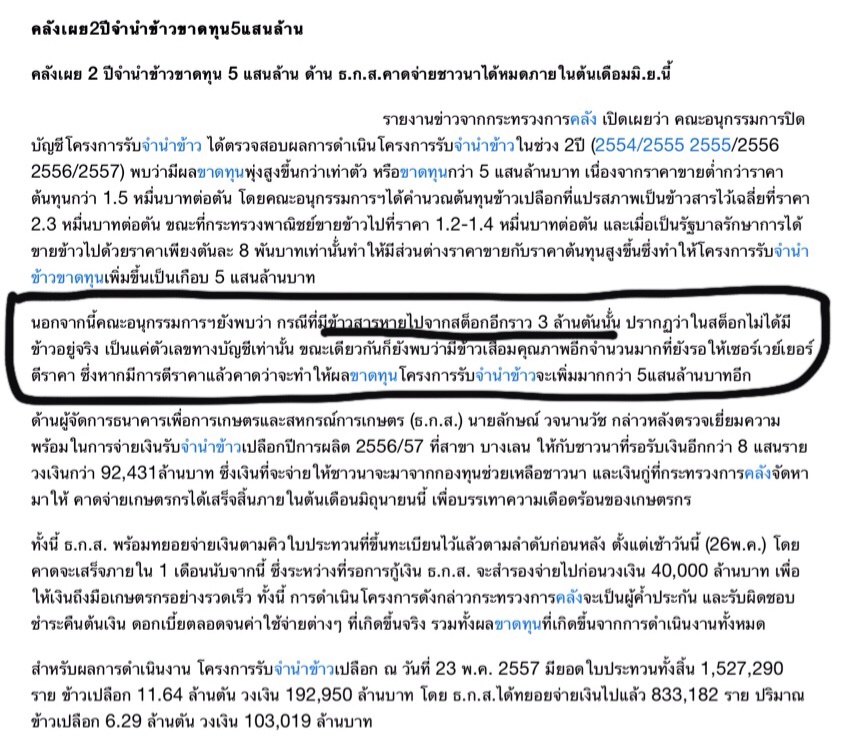 เงินจำนำข้าวประมาณการขาดทุน 5 แสนล.บ. ยังไม่นับว่าถ้าขายไม่ออกจะขาดทุนอีกเท่าไร