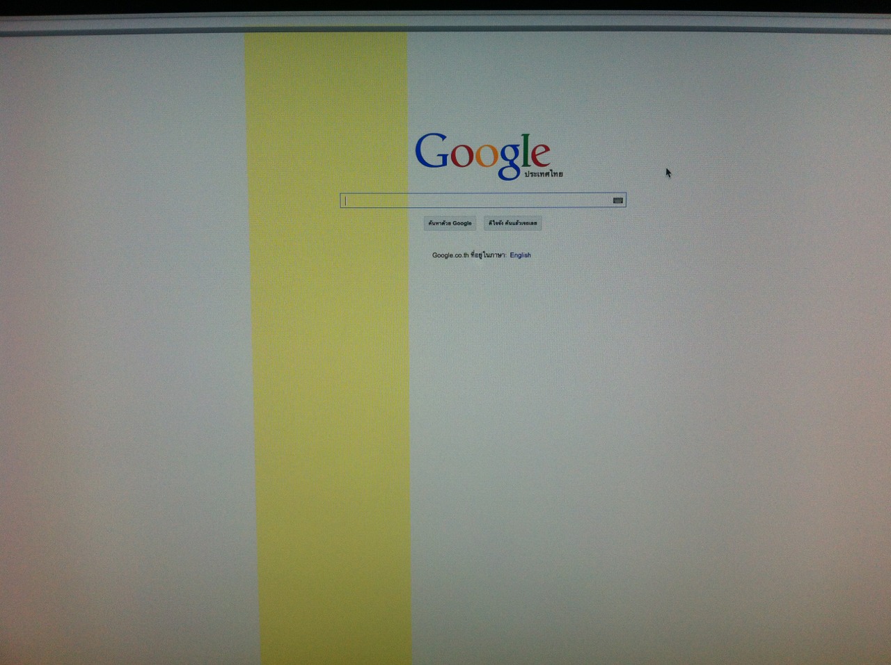 ที่แปลกมากไปกว่านั้น (และเป็นเหตุผลที่ยังลังเลไม่ยอมยกไปซ่อม) คือเปิดใช้งานอยู่ดี ๆ แถบสีที่ว่านี้ก็จะหายไปเอง และก็จะกลับมาเป็นเองอีก วนอย่างนี้อยู่เรื่อย ๆ ค่ะ