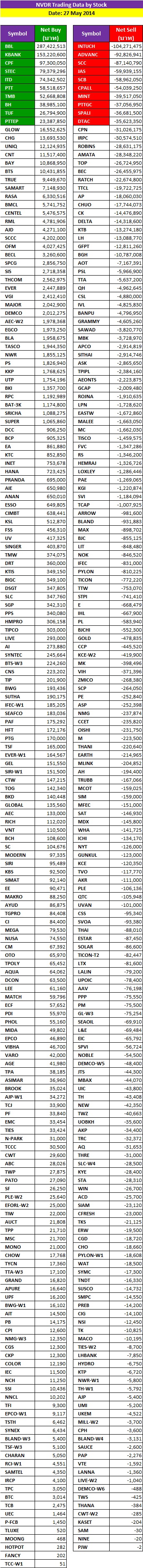 NVDR Top 10 Buy or Sell @ 27 05 2014 Ja ^o^