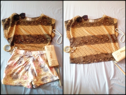 ครอปผ้าชีฟอง สีทองน้ำตาล ลายสวยคะ รอบอกได้ถึง 38" ความยาว 20" ราคา 120 บาท
