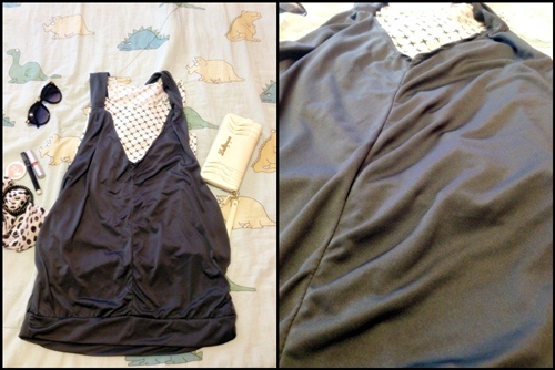 เสื้อแขนกุด ลายทาง เทา-ดำ ทรงเอ ผ้าเนื้อหนา ทิ้งตัว รอบอกได้ถึง 36" ความยาว 27" ราคา 100 บาท