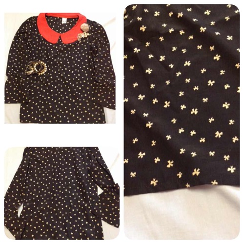 เสื้อแขนยาว ชีฟองนุ่ม สีดำ ลายโบ รอบอก 34" ความยาว 24" ราคา 100 บาท