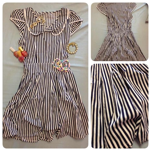 เดรสลายทาง สีกรมน้ำเงิน-ขาว รอบอก 30"